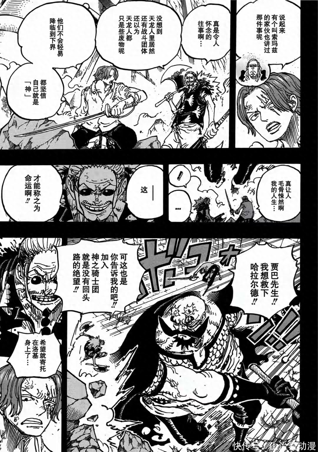 巨人族篇章的回忆剧情还没有结束,洛基王子讲述14年前的城堡大战真相,海尔丁必须要让洛基王子讲清楚当年的真相,他并不在艾尔巴夫。城堡大战只有四人活下来,他们分别是贾巴,红发香克斯,亚鲁鲁长老,洛基王子。