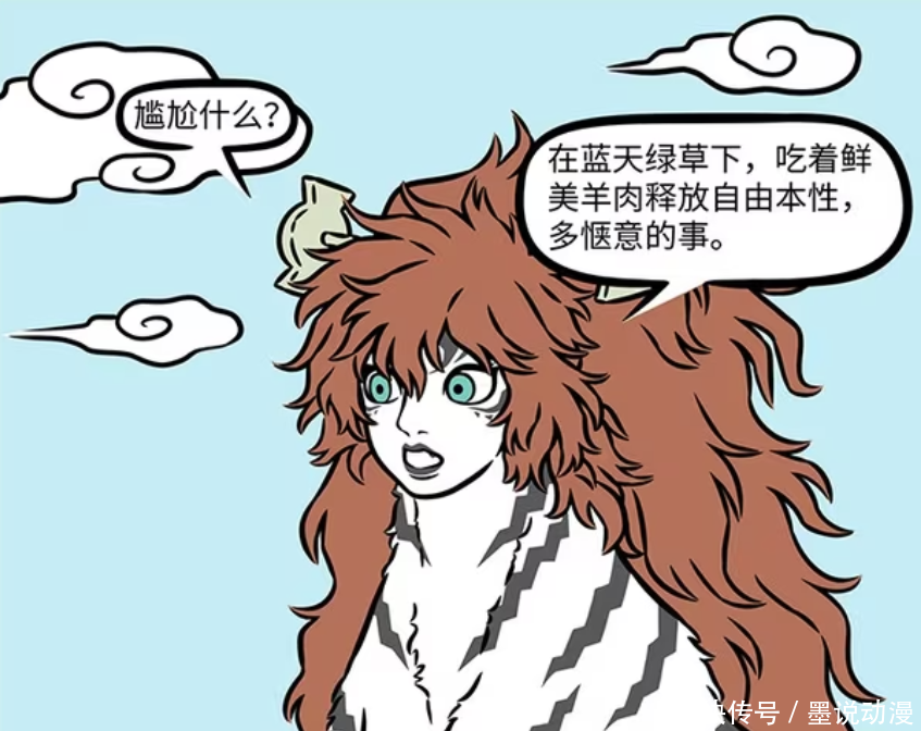 西王母不理解,为何女娲会感到尴尬?都是在蓝天绿草之下,吃着这么新鲜的羊肉,这不是品尝美食的绝佳环境吗?还能自由释放本性,对于西王母来说,那就是件很惬意的事情。可是如果看到周围的情况,就知道女娲为何有点尴尬。